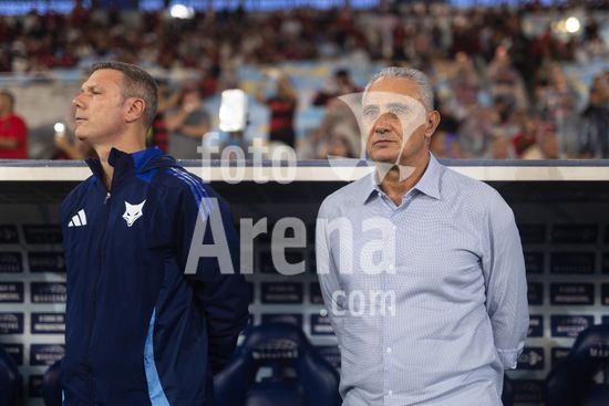 2903422 RIO DE JANEIRO, BRASIL - 11 DE MARÇO: TITE, técnico do Cruzeiro, conversa com alguns jogadores do Flamengo antes da partida entre Flamengo e Cruzeiro no Brasileirão 2026 no Estádio do Maracanã em 11 de março de 2026 no Rio de Janeiro, Brasil.