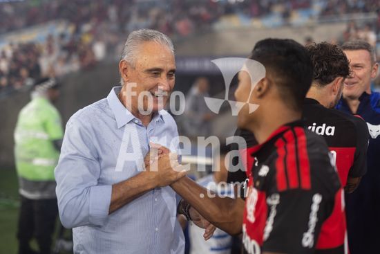 2903328 lamengo e Cruzeiro disputam partida válida pela 5ª rodada do Campeonato Brasileiro Série A, no Estádio do Maracanã, na noite desta quarta-feira (11), no Rio de Janeiro.Tite comprimenta jogadores do Flamengo