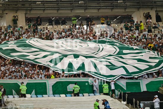 2827264 Flamengo x Palmeiras realizada no Estádio do Maracanã, pela 29a rodada do campeonato Brasileiro 2025, na tarde deste domingo (19), no Rio de Janeiro, RJ.Bandeirão do Palmeiras
