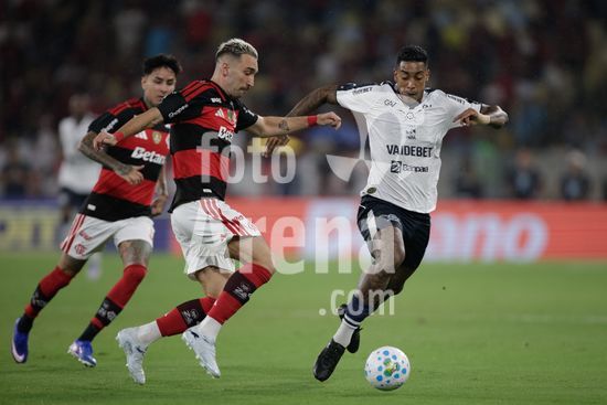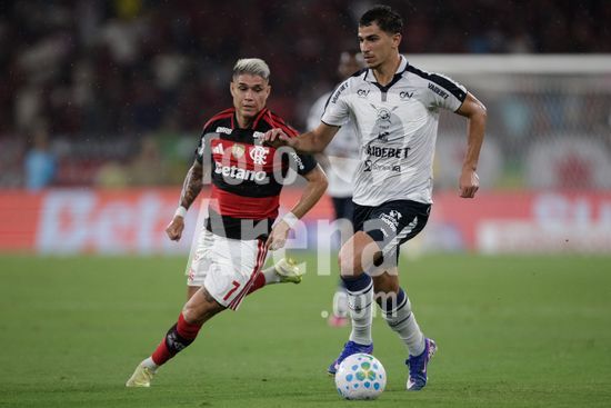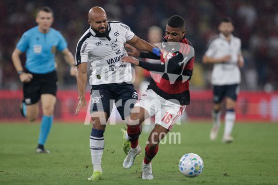 2908097 RIO DE JANEIRO, BRASIL - 19 DE MARÇO: VITOR BUENO, do Remo, disputa a bola com LUIZ ARAUJO, do Flamengo, durante a partida entre Flamengo e Remo, válida pelo Brasileirão 2026, no Estádio do Maracanã, em 19 de março de 2026, no Rio de Janeiro, Brasil.