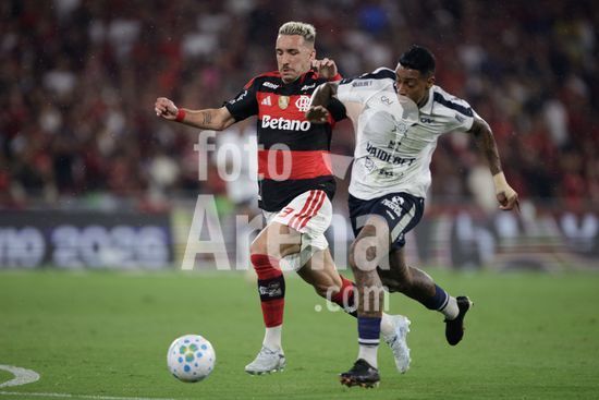 2908101 RIO DE JANEIRO, BRASIL - 19 DE MARÇO: ALEX SANDRO, do Flamengo, disputa a bola com ALEF MANGA, do Remo, durante a partida entre Flamengo e Remo, válida pelo Brasileirão 2026, no Estádio do Maracanã, em 19 de março de 2026, no Rio de Janeiro, Brasil.