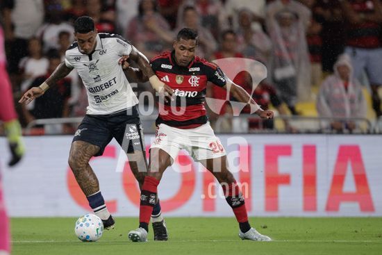 2908093 RIO DE JANEIRO, BRASIL - 19 DE MARÇO: LEO ORTIZ, do Flamengo, disputa a bola com ALEF MANGA, do Remo, durante a partida entre Flamengo e Remo, válida pelo Brasileirão 2026, no Estádio do Maracanã, em 19 de março de 2026, no Rio de Janeiro, Brasil.