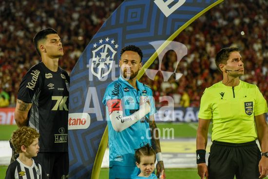 2839795 Neymar cumprimemta jogadores e profissionais, neste Domingo, 09/11, pelo Campeonato Brasileiro, partida válida pela 33ª rodada. Os times vão a campo no gramado do Maracanã as 18:30 horário de Brasília.