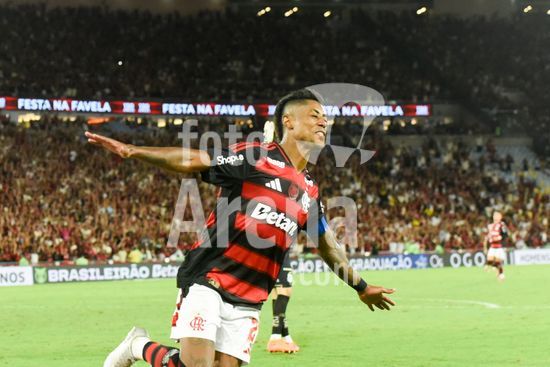 2839843 O jogador Leo Pereira do flamengo comemorando seu gol, neste Domingo, 09/11, pelo Campeonato Brasileiro, partida válida pela 33ª rodada. Os times vão a campo no gramado do Maracanã as 18:30 horário de Brasília.