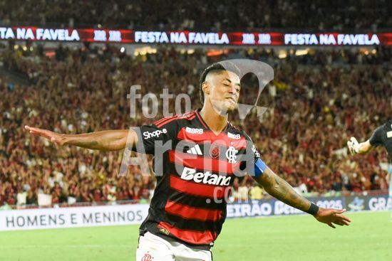 2839846 O jogador Leo Pereira do flamengo comemorando seu gol, neste Domingo, 09/11, pelo Campeonato Brasileiro, partida válida pela 33ª rodada. Os times vão a campo no gramado do Maracanã as 18:30 horário de Brasília.