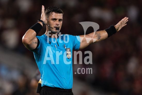 2833977 RIO DE JANEIRO, BRASIL - OUTUBRO 01: O Árbitro FERNANDO ANTONIO MENDES DE SALLES NASCIMENTO FILHO gesticula durante a partida entre Flamengo e Sport Recife no Brasileirão 2025 no Estádio do Maracanã em 01 de novembro de 2025 no Rio de Janeiro, Brasil.