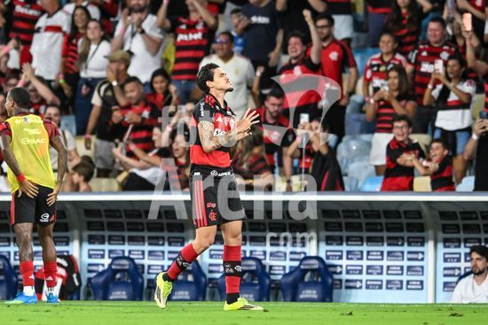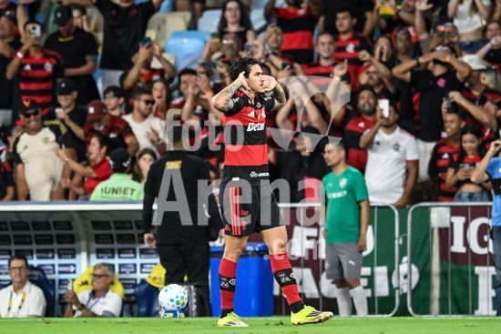 2923758 RIO DE JANEIRO, BRASIL - 12 DE ABRIL: PEDRO, do Flamengo, comemora após marcar o primeiro gol da equipe durante a partida entre Fluminense e Flamengo, válida pelo Brasileirão 2026, no Estádio do Maracanã, em 12 de abril de 2026, no Rio de Janeiro, Brasil.
