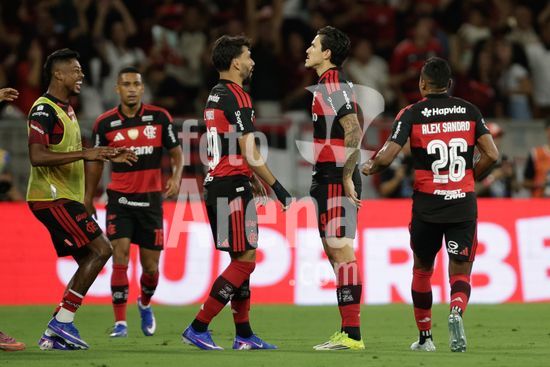 2923734 RIO DE JANEIRO, BRASIL - 12 DE ABRIL: PEDRO, do Flamengo, comemora após marcar o segundo gol da equipe durante a partida entre Fluminense e Flamengo, válida pelo Brasileirão 2026, no Estádio do Maracanã, em 12 de abril de 2026, no Rio de Janeiro, Brasil.