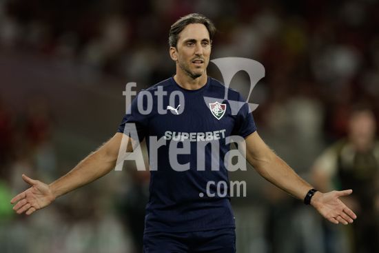 2923890 RIO DE JANEIRO, BRASIL - 12 DE ABRIL: LUIS ZUBELDIA, técnico do Fluminense, gesticula durante a partida entre Fluminense e Flamengo no Brasileirão 2026 no Estádio do Maracanã em 12 de abril de 2026 no Rio de Janeiro, Brasil.