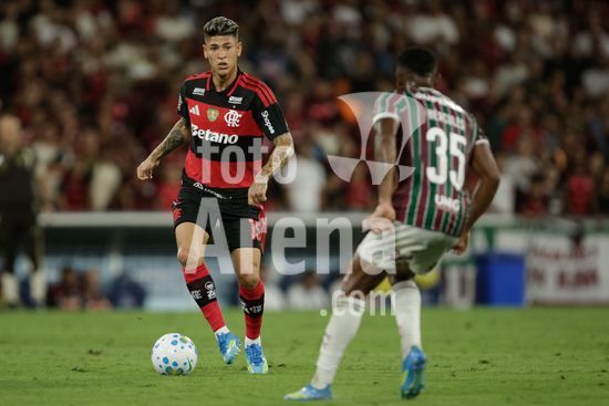 2923891 RIO DE JANEIRO, BRASIL - 12 DE ABRIL: PEDRO do Flamengo controla a bola durante a partida entre Fluminense e Flamengo no Brasileirão 2026 no Estádio do Maracanã em 12 de abril de 2026 no Rio de Janeiro, Brasil.