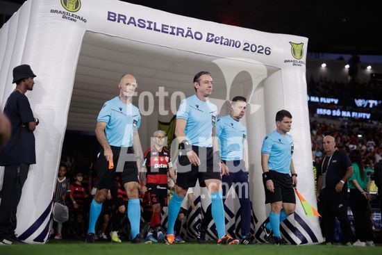 2923898 RIO DE JANEIRO, BRASIL - 12 DE ABRIL: O árbitro RAPHAEL KLAUS entra em campo antes da partida entre Fluminense e Flamengo no Brasileirão 2026 no Estádio do Maracanã em 12 de abril de 2026 no Rio de Janeiro, Brasil.
