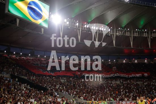 2923903 RIO DE JANEIRO, BRASIL - 12 DE ABRIL: Torcedores do Flamengo torcem antes da partida entre Fluminense e Flamengo no Brasileirão 2026 no Estádio do Maracanã em 12 de abril de 2026 no Rio de Janeiro, Brasil.