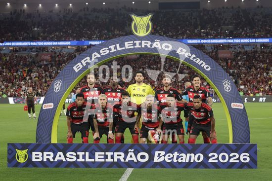 2923904 RIO DE JANEIRO, BRASIL - 12 DE ABRIL: Jogadores do Flamengo posam para foto durante a partida entre Fluminense e Flamengo no Brasileirão 2026 no Estádio do Maracanã em 12 de abril de 2026 no Rio de Janeiro, Brasil.
