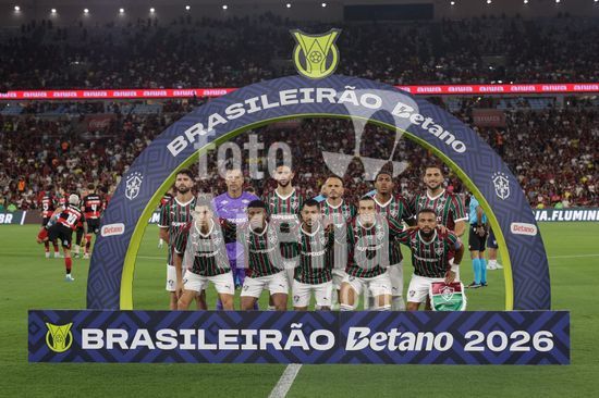 2923905 RIO DE JANEIRO, BRASIL - 12 DE ABRIL: Jogadores do Fluminense posam para foto durante a partida entre Fluminense e Flamengo no Brasileirão 2026 no Estádio do Maracanã em 12 de abril de 2026 no Rio de Janeiro, Brasil.