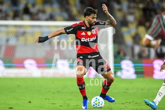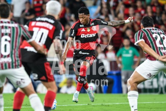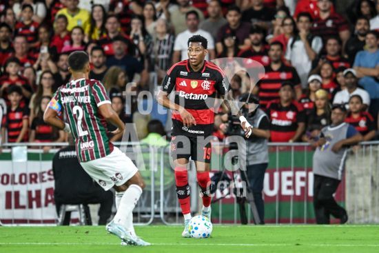 2923895 RIO DE JANEIRO, BRASIL - 12 DE ABRIL: BRUNO HENRIQUE do Flamengo controla a bola durante a partida entre Fluminense e Flamengo como parte do Brasileirao 2026 no Estádio do Maracanã em 12 de abril de 2026 no Rio de Janeiro, Brasil.