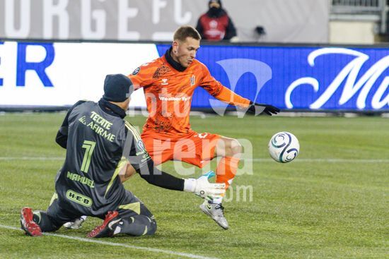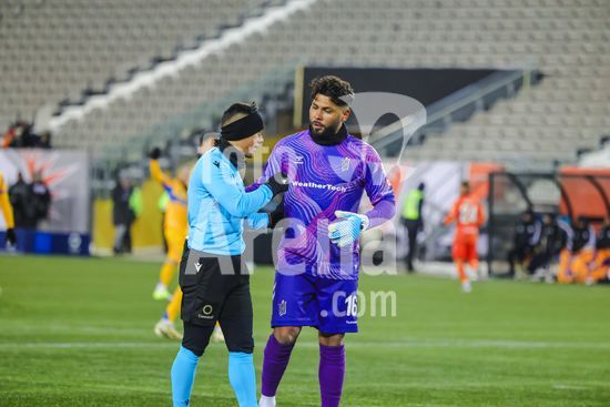 2879084 Rezart Rama (24 Forge FC) e Nahuel Guzman (1 Tigres UANL) em acao durante a partida da primeira etapa da primeira rodada da Copa dos Campeoes da Concacaf entre Forge FC e Tigres UANL no Hamilton Stadium em Hamilton, Canada (SOMENTE PARA USO EDITORIAL). (Curtis Wong / SPP)
