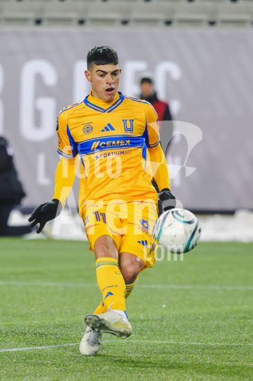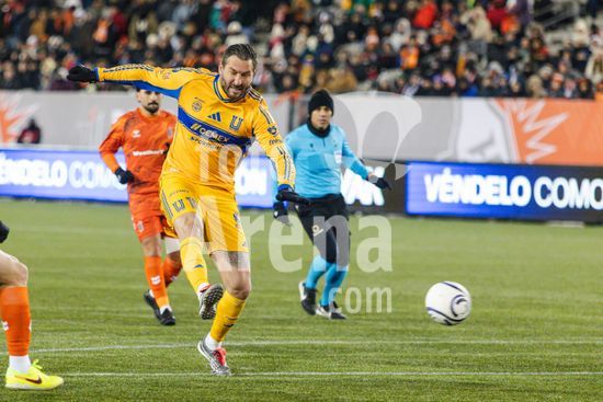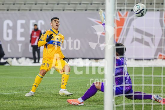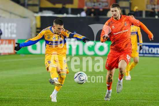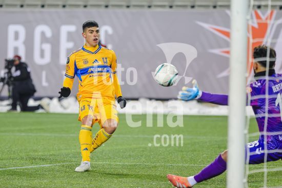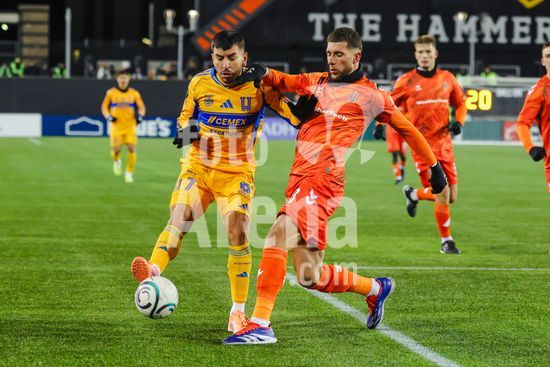 2879086 Juan Francisco Brunetta (11 Tigres UANL) marcou, mas seu gol foi posteriormente anulado apos revisao do VAR durante o jogo de ida da 1ª fase da Copa dos Campeoes da Concacaf entre Forge FC e Tigres UANL no Estadio Hamilton em Hamilton, Canada (APENAS PARA USO EDITORIAL). (Curtis Wong / SPP)