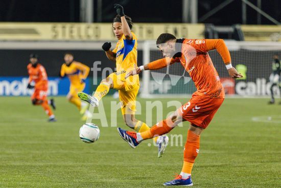 2879164 Romulo Zanre (23 Tigres UANL) em acao durante o jogo de ida da 1ª fase da Copa dos Campeoes da Concacaf entre Forge FC e Tigres UANL no Estadio Hamilton em Hamilton, Canada (APENAS PARA USO EDITORIAL). (Curtis Wong / SPP)