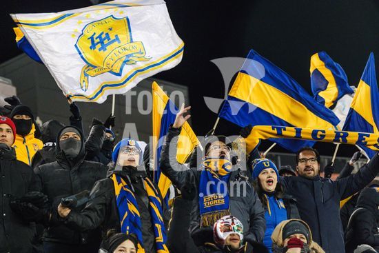 2879094 Torcedores do Tigres vibrando pelo time durante o jogo de ida da primeira fase da Copa dos Campeoes da Concacaf entre Forge FC e Tigres UANL no Estadio Hamilton em Hamilton, Canada (APENAS PARA USO EDITORIAL). (Curtis Wong / SPP)