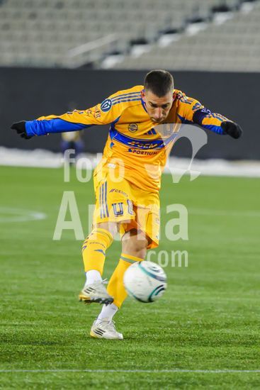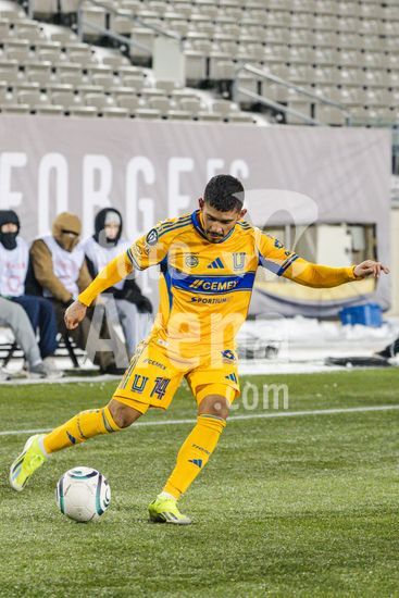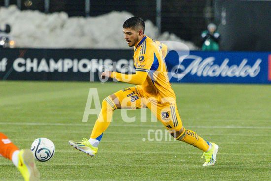2879104 Jesus Garza (14 Tigres UANL) em acao durante o jogo de ida da 1ª fase da Copa dos Campeoes da Concacaf entre Forge FC e Tigres UANL no Estadio Hamilton em Hamilton, Canada (APENAS PARA USO EDITORIAL). (Curtis Wong / SPP)