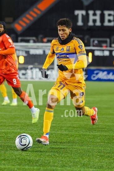 2879155 Ozziel Herrera (77 Tigres UANL) em acao durante o jogo de ida da 1ª fase da Copa dos Campeoes da Concacaf entre Forge FC e Tigres UANL no Estadio Hamilton em Hamilton, Canada (APENAS PARA USO EDITORIAL). (Curtis Wong / SPP)