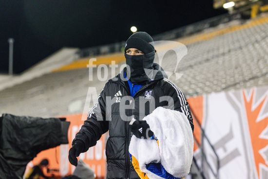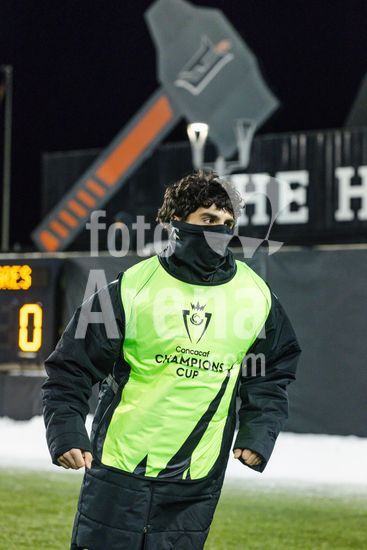 2879162 Jogador do Forge FC se aquecendo durante o jogo de ida da 1ª rodada da Copa dos Campeoes da Concacaf entre Forge FC e Tigres UANL no Estadio Hamilton em Hamilton, Canada (APENAS PARA USO EDITORIAL). (Curtis Wong / SPP)