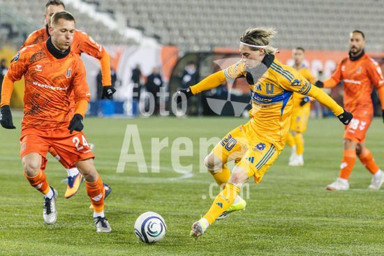 2879100 Juan Francisco Brunetta (11 Tigres UANL) marcou, mas seu gol foi anulado apos revisao do VAR durante o jogo de ida da 1ª fase da Copa dos Campeoes da Concacaf entre Forge FC e Tigres UANL no Estadio Hamilton em Hamilton, Canada (APENAS PARA USO EDITORIAL). (Curtis Wong / SPP)
