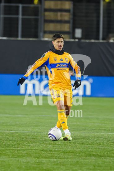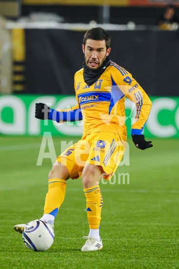 2879097 Gorriaran Fontes (8 Tigres UANL) em acao durante a partida da primeira etapa da primeira rodada da Copa dos Campeoes da Concacaf entre Forge FC e Tigres UANL no Hamilton Stadium em Hamilton, Canada (SOMENTE USO EDITORIAL). (Curtis Wong / SPP)