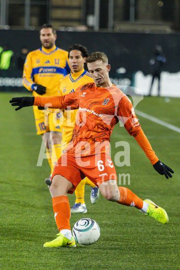 2879176 Juan Vigon (6 Tigres UANL) em acao durante a partida da primeira etapa da primeira rodada da Copa dos Campeoes da Concacaf entre Forge FC e Tigres UANL no Hamilton Stadium em Hamilton, Canada (SOMENTE USO EDITORIAL). (Curtis Wong / SPP)