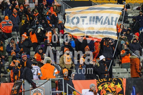 2879177 Torcedores do Forge FC vibrando pelo time durante o jogo de ida da primeira fase da Copa dos Campeoes da Concacaf entre Forge FC e Tigres UANL no Estadio Hamilton em Hamilton, Canada (APENAS PARA USO EDITORIAL). (Curtis Wong / SPP)