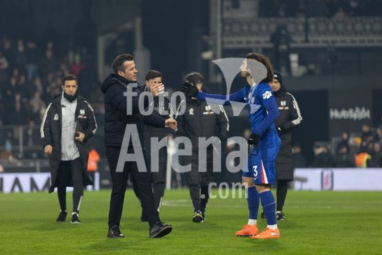 2865561 O tecnico Marco Silva, do Fulham, e Marc Cucurella, do Chelsea, apertam as maos antes do inicio da partida da Premier League entre Fulham e Chelsea no Craven Cottage, em 7 de janeiro de 2026, em Londres, Inglaterra. (Pedro Soares / SPP)
