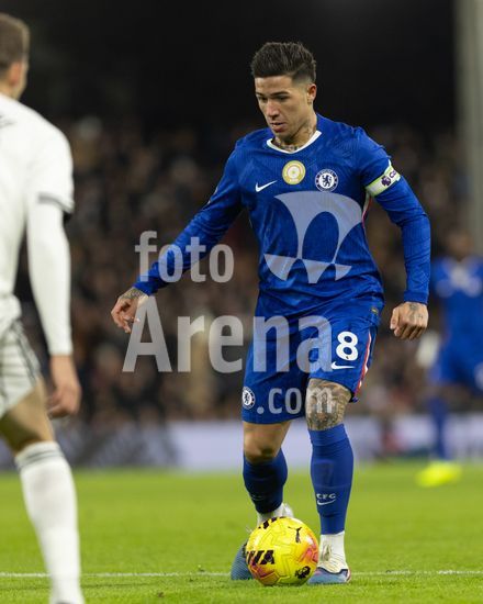 2865567 O capitao Enzo Fernandez, do Chelsea, com a bola durante a partida da Premier League entre Fulham e Chelsea no Craven Cottage, em 7 de janeiro de 2026, em Londres, Inglaterra. (Pedro Soares / SPP)