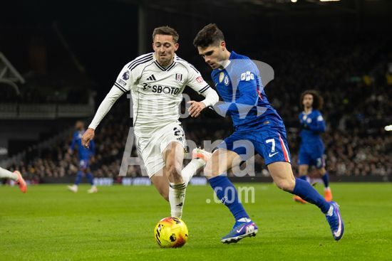 2865570 Marc Cucurella, do Chelsea, com a bola durante a partida da Premier League entre Fulham e Chelsea no Craven Cottage, em 7 de janeiro de 2026, em Londres, Inglaterra.(Pedro Soares / SPP)