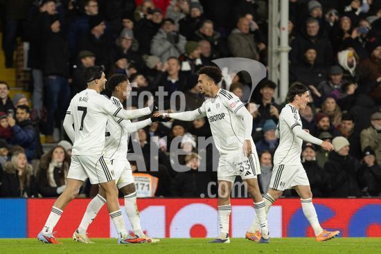 2865596 Jogadores do Fulham comemoram o gol marcado durante a partida da Premier League entre Fulham e Chelsea no Craven Cottage, em 7 de janeiro de 2026, em Londres, Inglaterra. (Pedro Soares / SPP)