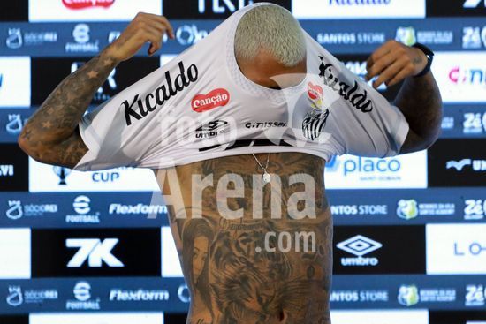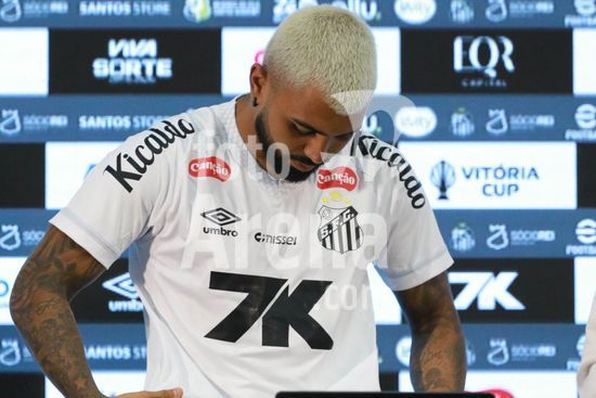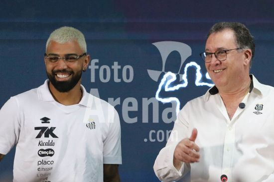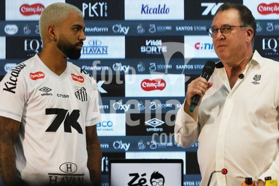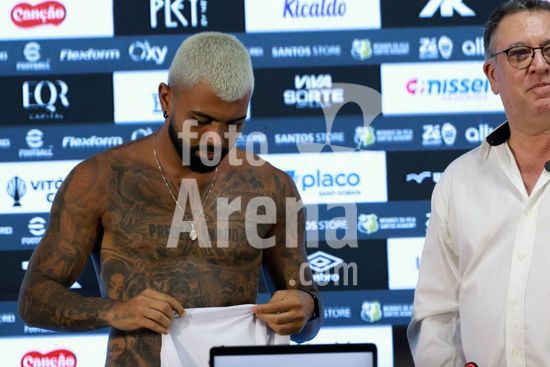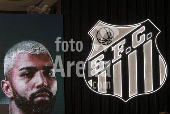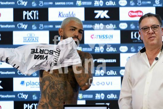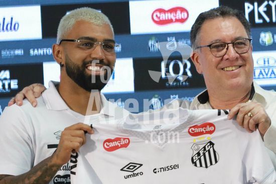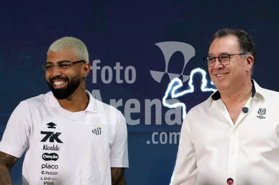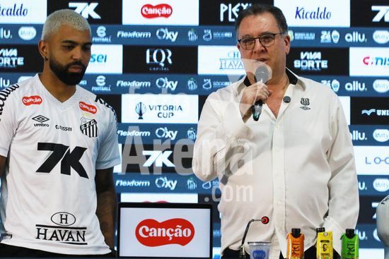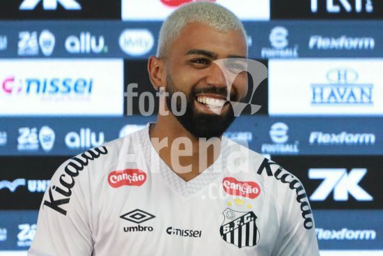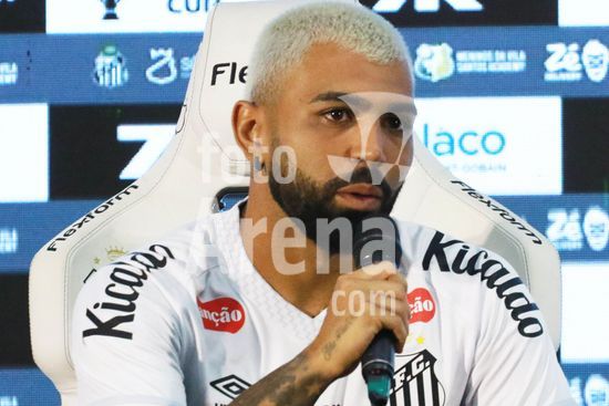 Gabriel Barbosa, o Gabigol, é apresentado como novo reforço do Santos para temporada 2026, em entrevista coletiva na Baixada Santista, nesta segunda-feira (5). O evento de apresentação do atacante revelado na base do clube conta com a presença de ídolos da história da equipe do litoral paulista.