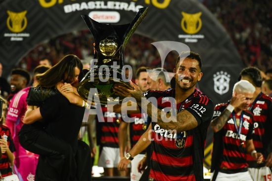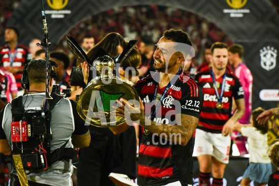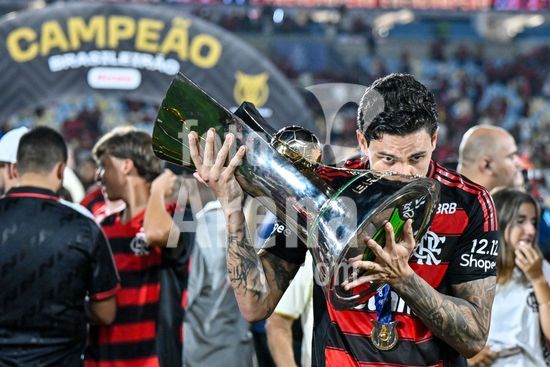 2852952 Flamengo x Ceará realizada no Estádio do Maracanã pelo Campeonato Brasileiro 2025, serie A, dela 37ª rodada, na noite desta quarta-feira (03), no Rio de Janeiro, RJ.Pedro com a taca