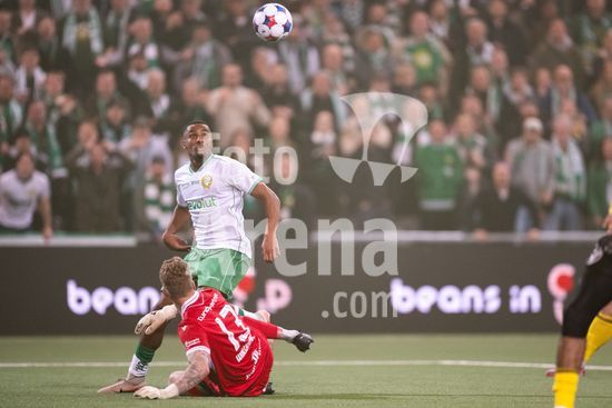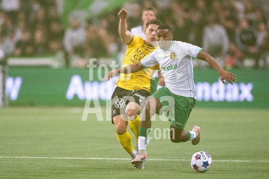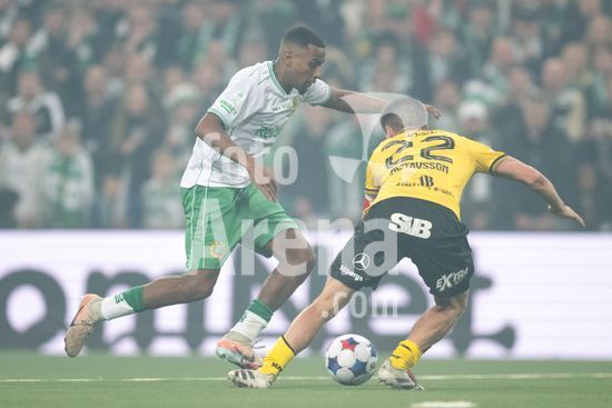 2919497 ESTOCOLMO, SUECIA - 4 DE ABRIL: Paulos Abraham de Hammarby (7) e Timo Stavitski de Mjallby AIF (11) durante o jogo de futebol Allsvenskan entre Hammarby IF e Mjallby AIF em 3Arena, Estocolmo, Suecia, em 4 de abril de 2026. (Philip Kangas / SPP)