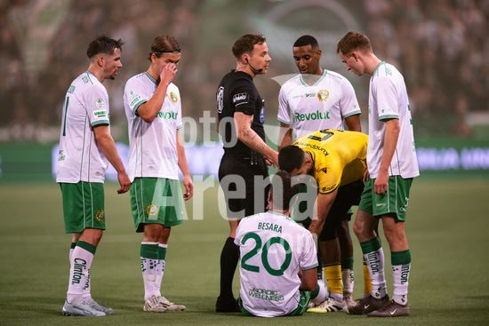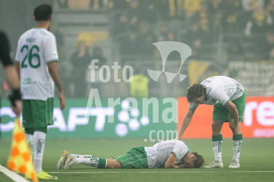 2919481 ESTOCOLMO, SUECIA - 4 DE ABRIL: Nahir Besara de Hammarby (20) se machuca durante o jogo de futebol Allsvenskan entre Hammarby IF e Mjallby AIF na 3Arena, Estocolmo, Suecia, em 4 de abril de 2026. (Philip Kangas / SPP)