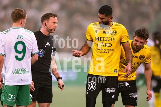 2919480 ESTOCOLMO, SUECIA - 4 DE ABRIL: Abdullah Iqbal do Mjallby AIF (5) reage a uma chamada do arbitro durante o jogo de futebol Allsvenskan entre Hammarby IF e Mjallby AIF na 3Arena, Estocolmo, Suecia, em 4 de abril de 2026. (Philip Kangas / SPP)