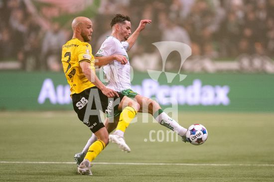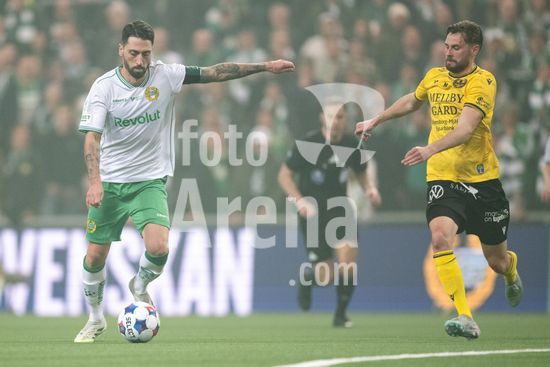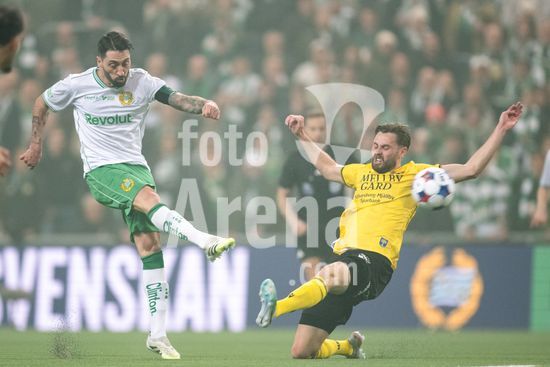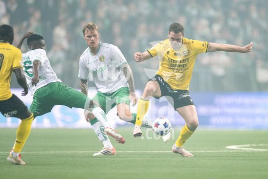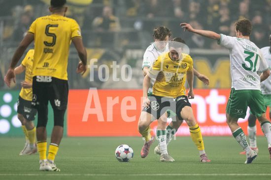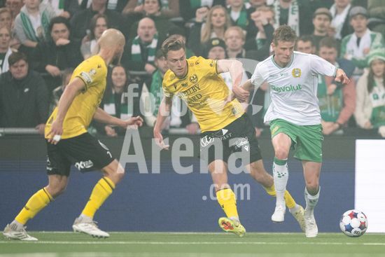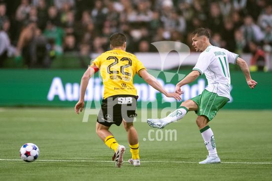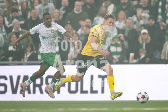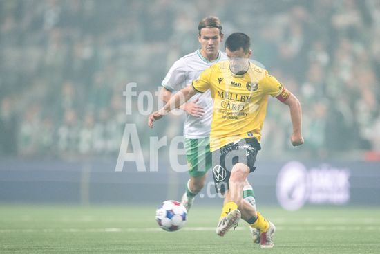 2919499 ESTOCOLMO, SUECIA - 4 DE ABRIL: Oscar Johansson Schellhas de Hammarby (11) e Jesper Gustavsson de Mjallby AIF (22) durante o jogo de futebol Allsvenskan entre Hammarby IF e Mjallby AIF em 3Arena, Estocolmo, Suecia, em 4 de abril de 2026. (Philip Kangas / SPP)