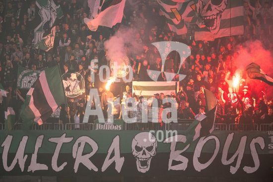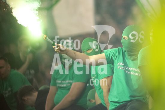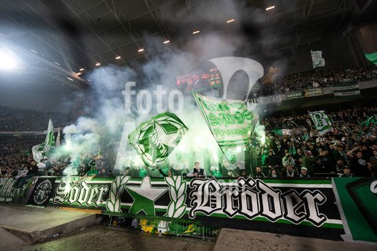 2919483 ESTOCOLMO, SUECIA - 4 DE ABRIL: Vista geral da secao ultras de Hammarby durante o jogo de futebol Allsvenskan entre Hammarby IF e Mjallby AIF em 3Arena, Estocolmo, Suecia, em 4 de abril de 2026. (Philip Kangas / SPP)