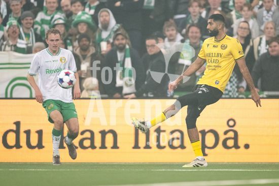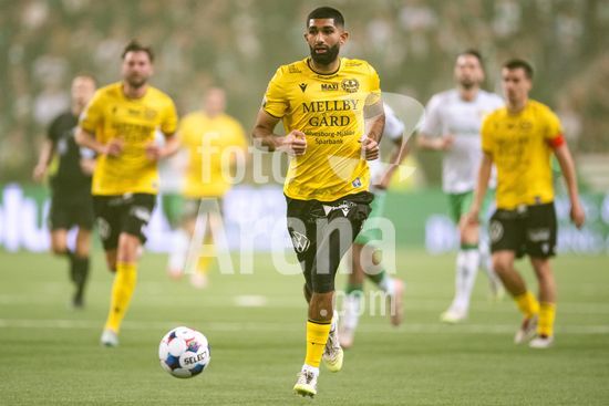 2919488 ESTOCOLMO, SUECIA - 4 DE ABRIL: Abdullah Iqbal de Mjallby AIF (5) durante o jogo de futebol Allsvenskan entre Hammarby IF e Mjallby AIF em 3Arena, Estocolmo, Suecia, em 4 de abril de 2026. (Philip Kangas / SPP)