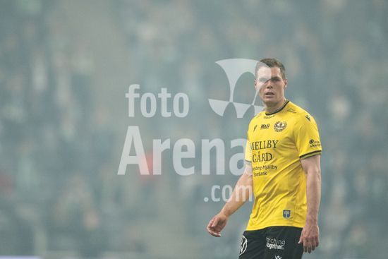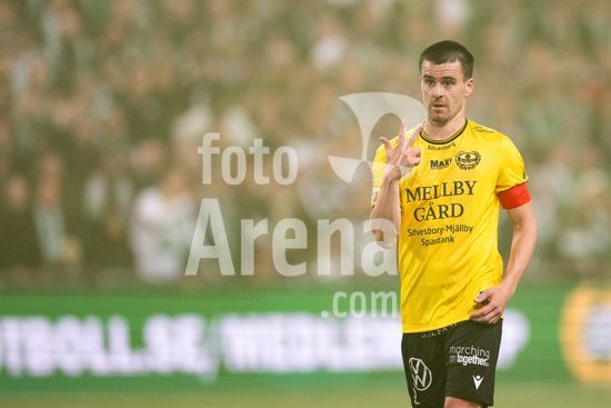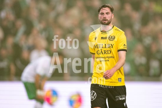 2919493 ESTOCOLMO, SUECIA - 4 DE ABRIL: Jesper Gustavsson do Mjallby AIF (22) durante o jogo de futebol Allsvenskan entre Hammarby IF e Mjallby AIF na 3Arena, Estocolmo, Suecia, em 4 de abril de 2026. (Philip Kangas / SPP)