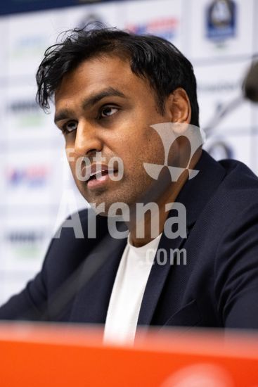2919503 ESTOCOLMO, SUECIA - 4 DE ABRIL: Tecnico Kalle Karlsson de Hammarby durante a coletiva de imprensa apos o jogo de futebol Allsvenskan entre Hammarby IF e Mjallby AIF em 3Arena, Estocolmo, Suecia, em 4 de abril de 2026. (Philip Kangas / SPP)