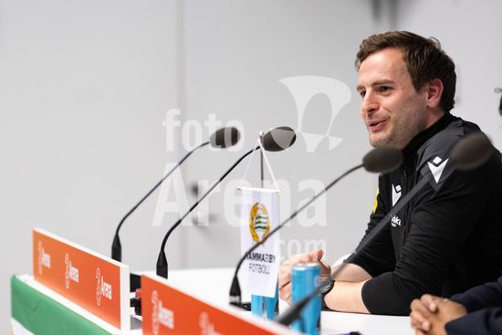 2919501 ESTOCOLMO, SUECIA - 4 DE ABRIL: Tecnico Kalle Karlsson de Hammarby durante a coletiva de imprensa apos o jogo de futebol Allsvenskan entre Hammarby IF e Mjallby AIF em 3Arena, Estocolmo, Suecia, em 4 de abril de 2026. (Philip Kangas / SPP)