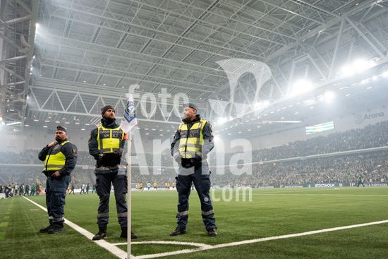 2919531 ESTOCOLMO, SUECIA - 4 DE ABRIL: Pessoal de seguranca durante o jogo de futebol Allsvenskan entre Hammarby IF e Mjallby AIF em 3Arena, Estocolmo, Suecia, em 4 de abril de 2026 (Philip Kangas / SPP)