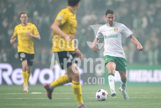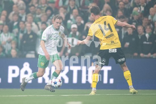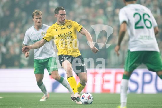 2919491 ESTOCOLMO, SUECIA - 4 DE ABRIL: Axel Noren do Mjallby AIF (4) durante o jogo de futebol Allsvenskan entre Hammarby IF e Mjallby AIF na 3Arena, Estocolmo, Suecia, em 4 de abril de 2026. (Philip Kangas / SPP)