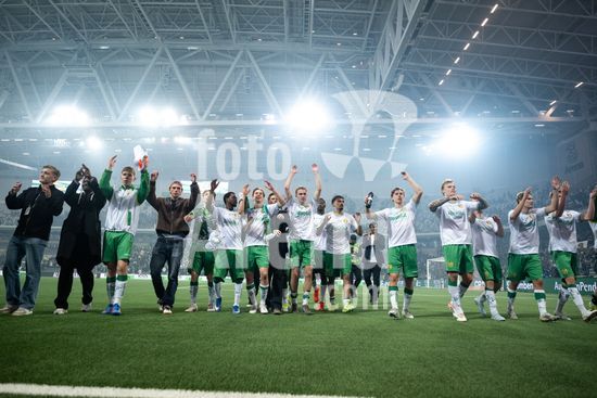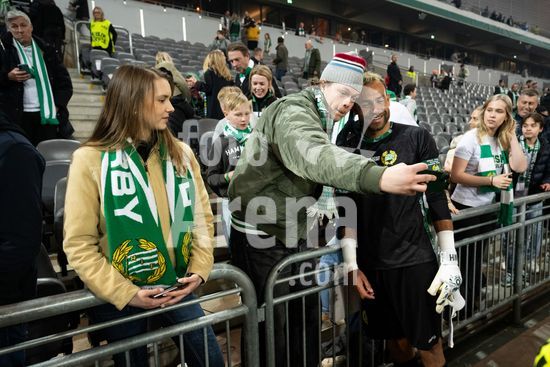 2919525 ESTOCOLMO, SUECIA - 4 DE ABRIL: Jogadores de Hammarby comemoram com fas apos o jogo de futebol Allsvenskan entre Hammarby IF e Mjallby AIF em 3Arena, Estocolmo, Suecia, em 4 de abril de 2026 (Philip Kangas / SPP)