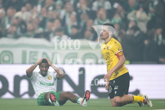 2919534 ESTOCOLMO, SUECIA - 4 DE ABRIL: Paulos Abraham de Hammarby (7) parece abatido durante o jogo de futebol Allsvenskan entre Hammarby IF e Mjallby AIF na 3Arena, Estocolmo, Suecia, em 4 de abril de 2026. (Philip Kangas / SPP)