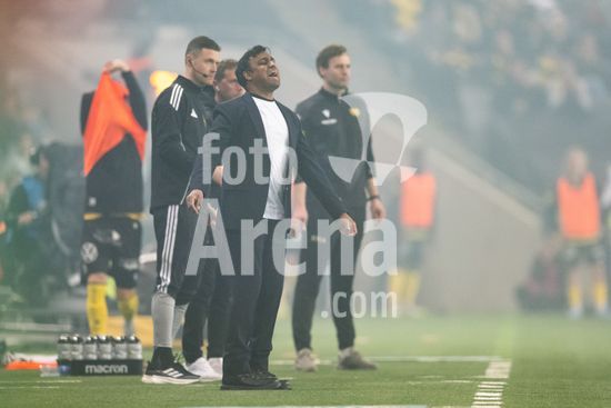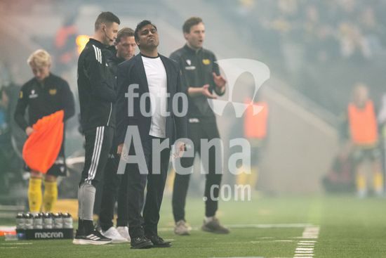2919494 ESTOCOLMO, SUECIA - 4 DE ABRIL: O tecnico Karl Marius Aksum do Mjallby AIF durante o jogo de futebol Allsvenskan entre Hammarby IF e Mjallby AIF na 3Arena, Estocolmo, Suecia, em 4 de abril de 2026. (Philip Kangas / SPP)